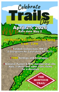 Montour Trail Council is now working on a plan to repair and re-open the tunnel. MTC does not recommend any on-road detour at this time due to narrow lanes and limited sight lines. Trail users wishing to travel west can access the trail at the McConnell Road trailhead (MP 24.7); users heading east can get on the trail at Kurnick (MP 25.6).