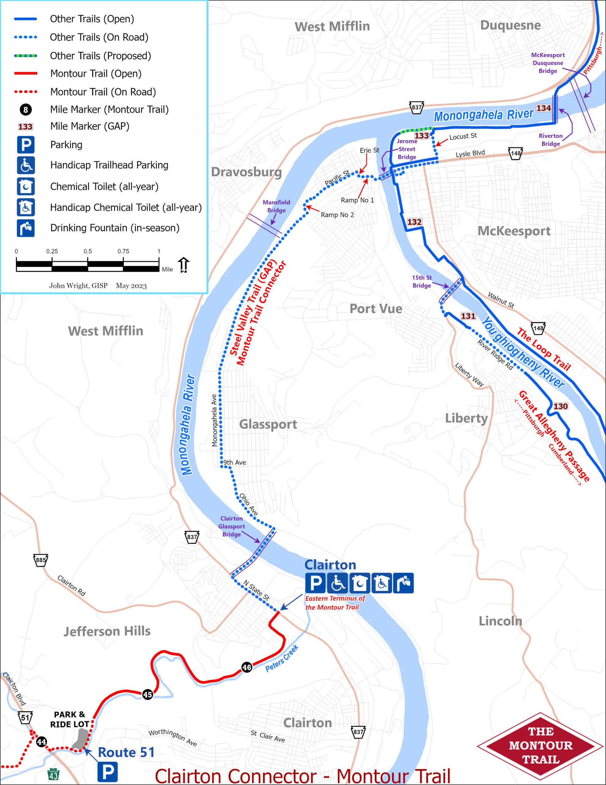 These inset maps are useful for navigating specific sections of the Montour Trail.